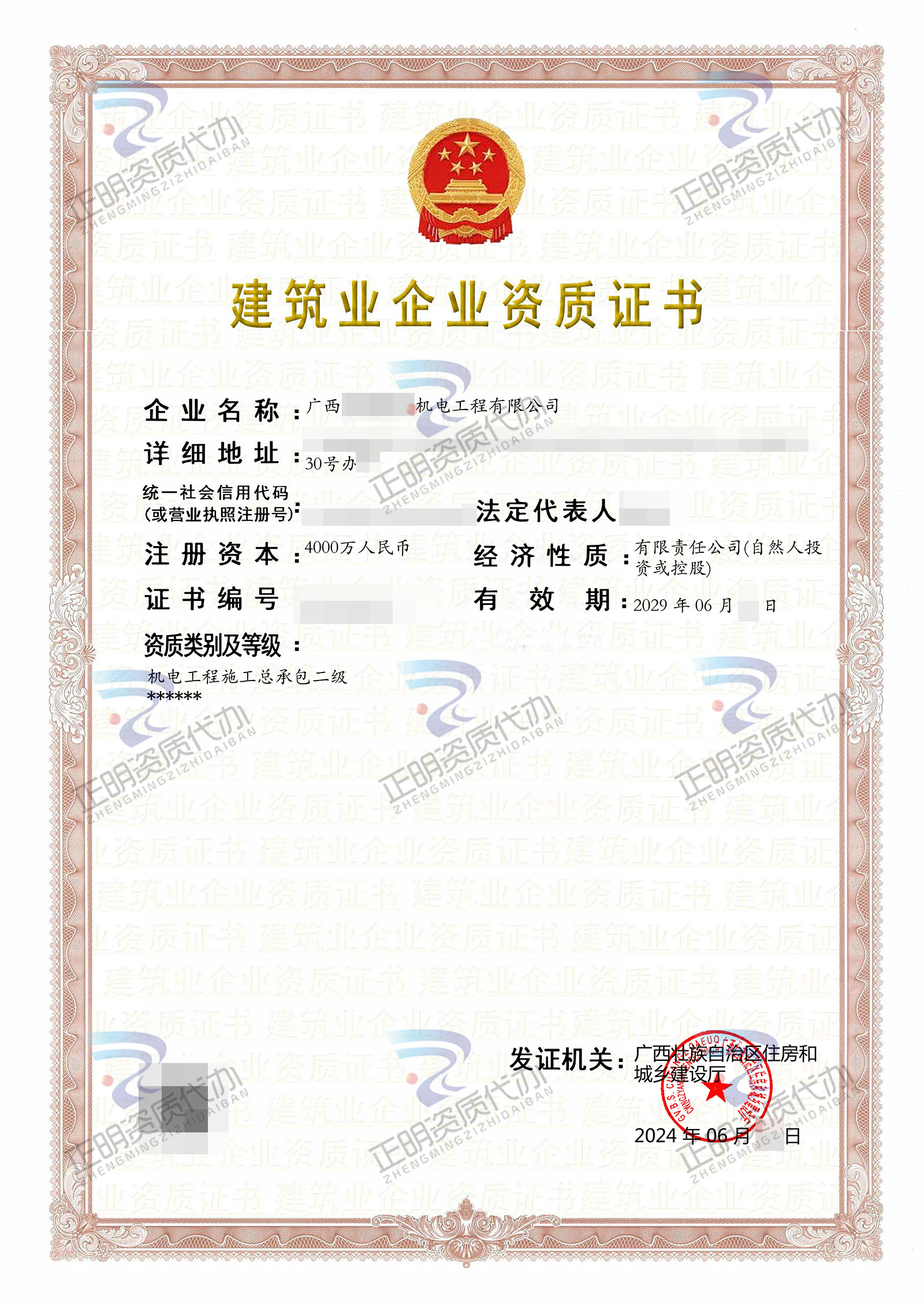 在材料審核通過(guò)并公示后,很快為劉總領(lǐng)取了機(jī)電工程施工總承包二級(jí)資質(zhì)證書。劉總對(duì)我們公司的代辦服務(wù)非常滿意,評(píng)價(jià)也很高,也對(duì)資質(zhì)代辦人員的辦事效率贊不絕口。